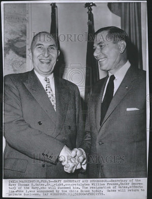 Navy Secretary and Successor-- Secretary of the Navy Thomas S.Gates Jr., right, congratulates William Franke,