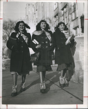 1948 Press Photo Lower Sherry Jeannette Minnette twins class day dresses Bopnnet