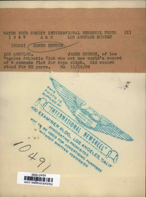 1929 Press Photo James Burton LA Athletic Club 6 second rope climb record