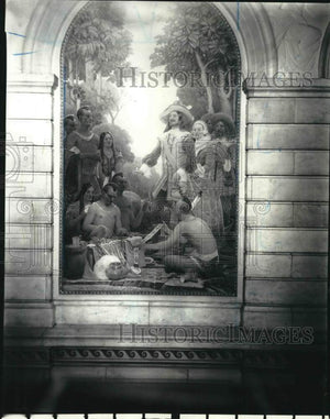 1935 Press Photo A mural of the purchase of Staten Island from Native Americans