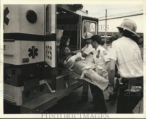 Emergency medical technicians prepare to take an accident victim to the hospital. Ambulances general
