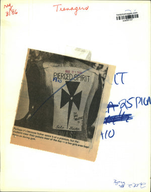 1986 Press Photo Teenage student wearing a Pierced Spirit jacket - sia09147
