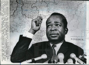 Washington - Peter Udoh, charge d'affairs at the Nigerian Embassy in Washington, issues an embassy statement today on the end of his nation's civil war. He said his government has no desire in further prosecuting the war and will take steps to feed the refugees. Peter Udoh, charge d'affairs at the Nigerian Embassy in Washington, issued a statement on the end of his nation's civil war, in which he said his government has no desire in further prosecuting the war and will take steps to feed the...