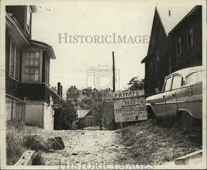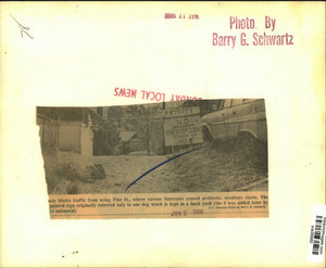 1966 Press Photo Traffic Blocked From Pine Street; Hand-Painted Sign Warns Dogs