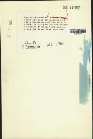 1990 Press Photo Carlton Lewis at Murder Trial Sentencing at Court - sya16477
